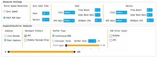 Supports Continuous streaming of Protocol data to Host computer SSD/HDD. Internal acquisition memory of 16GB expandable up to 64GB